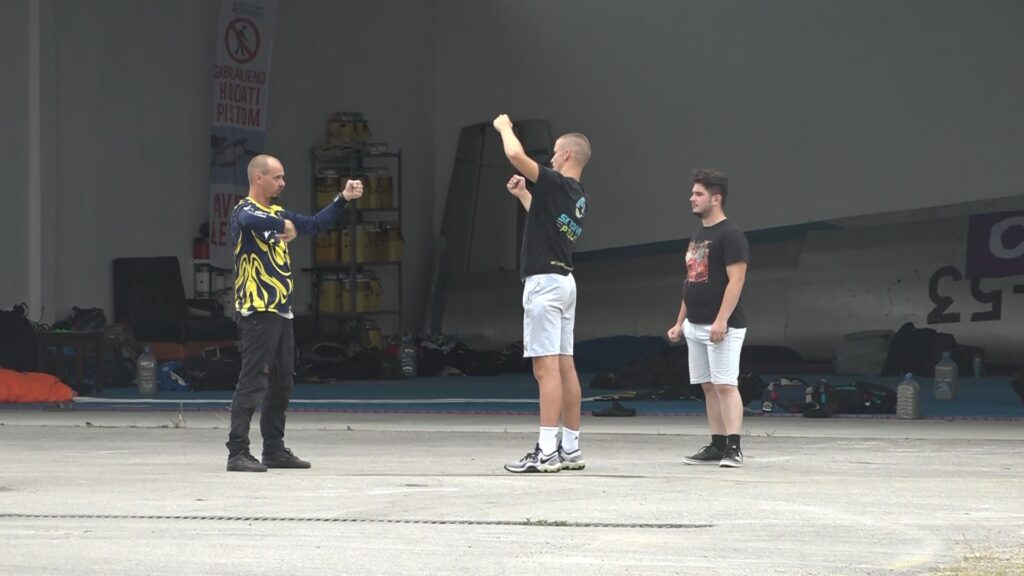 „Radimo po sistemu AFF. To znači da imamo dvojicu instruktora koji drže učenika sa obje strane i skočimo sa 4. 000 metara i radimo to što je u planu“, ističe slovenački instruktor Škole padobranstva „Born2fly“ Niko Vereš.