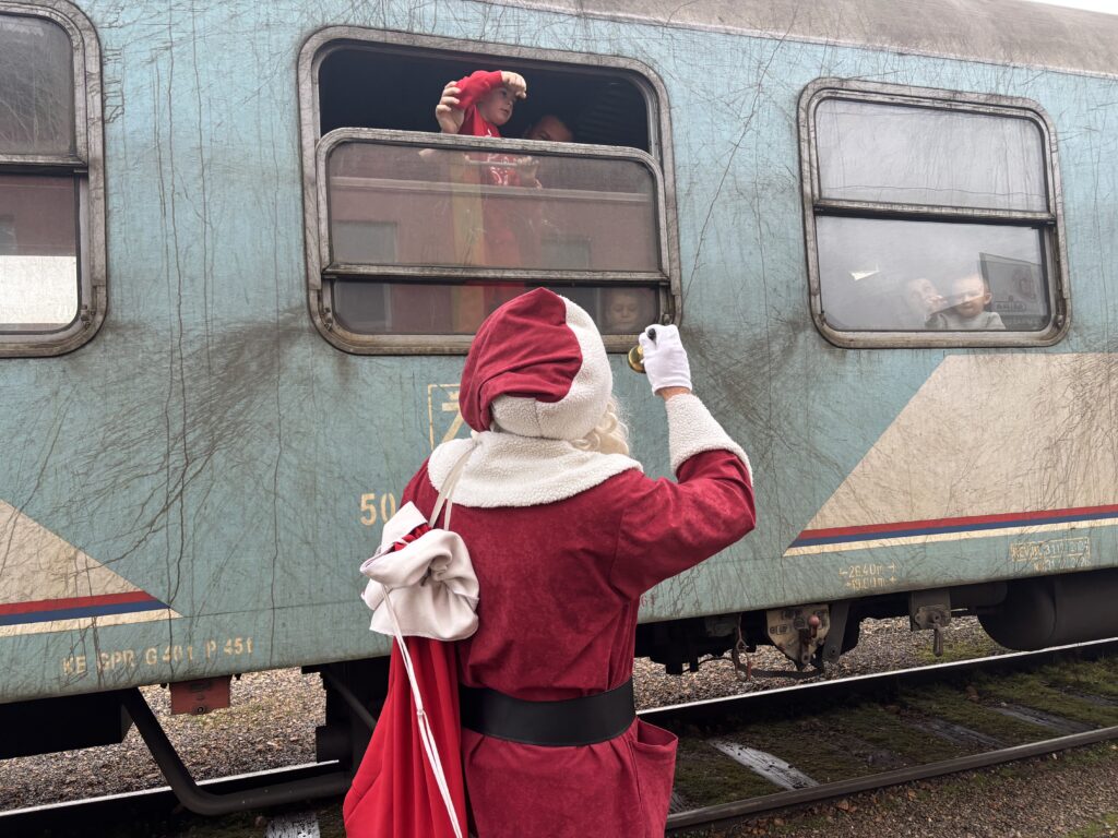 DJEDA MRAZ PODIJELIO PAKETIĆE DJECI ŽELJEZNIČARA U VOZU