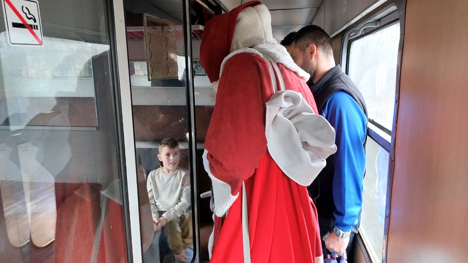 DJEDA MRAZ PODIJELIO PAKETIĆE DJECI ŽELJEZNIČARA U VOZU