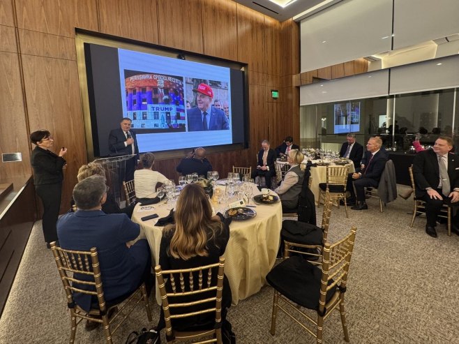 Američki general Majkl Flin priredio je u u Golden institutu u Vašingotnu večeru u čast Dodika, srpskog člana Predsjedništva BiH Željku Cvijanović i vršioca dužnosti predsjednika Republike Srpske Anu Trišić Babić.