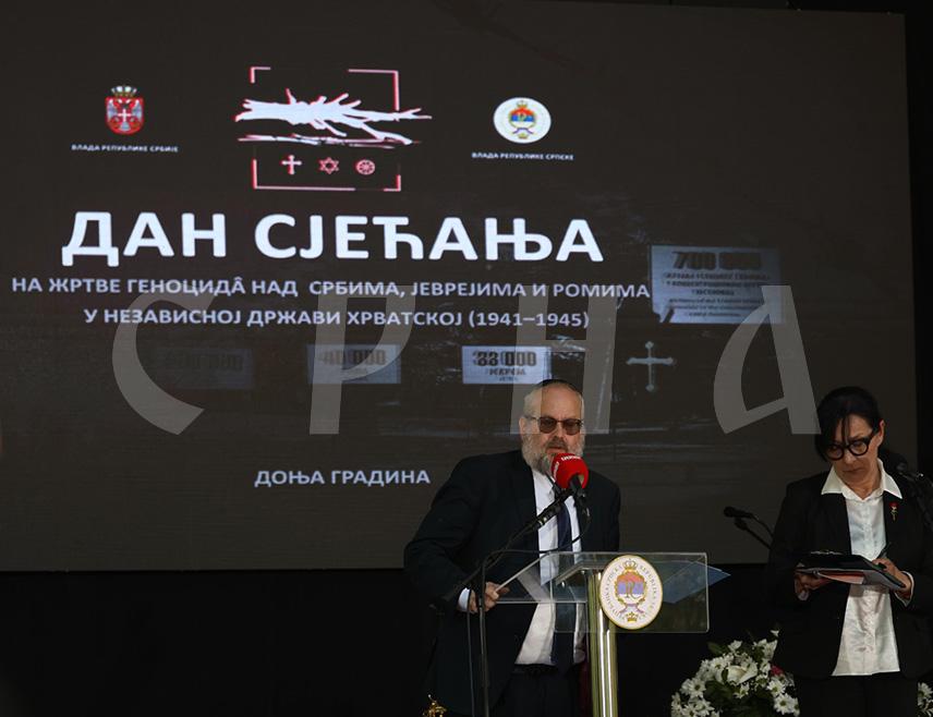 Na platou pored grobnog polja Topole u Spomen-području Donja Gradina, prethodno je molitvu govorio vrhovni rabin Jevrejske zajednice u Srbiji Isak Asiel.