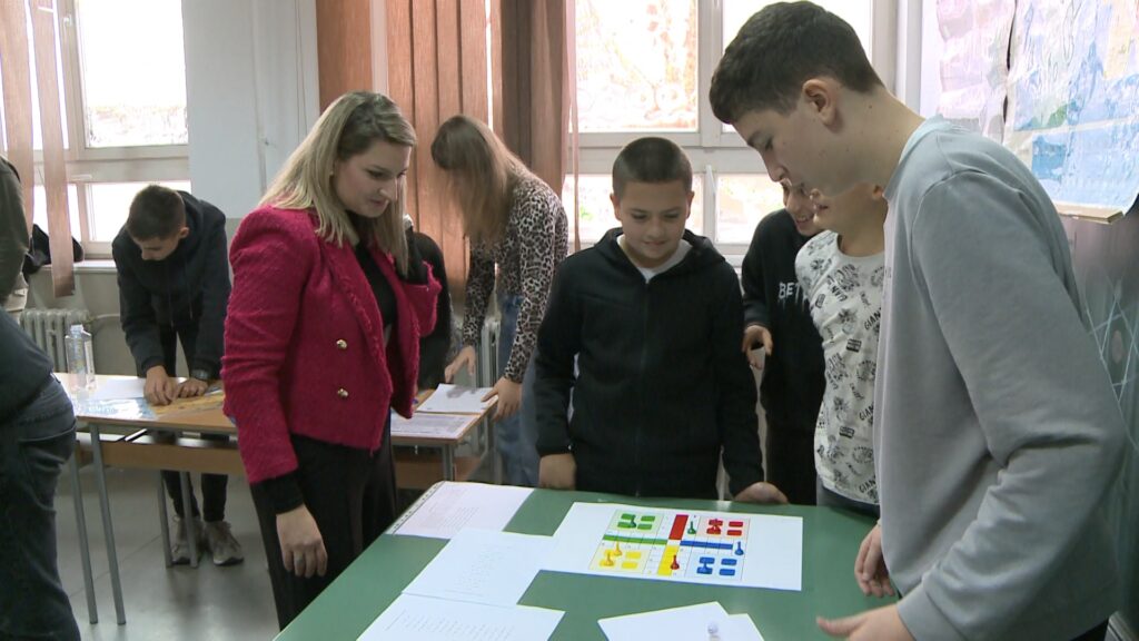 “Predstavili smo neke društvene igre koje se igraju svakodnevno, a mogu da se igraju i kroz matematiku. Na primjer igra ‘Čovječe, ne ljuti se’, standardno bacanje i pomjeranje kockice. Ovdje smo trebali da izračunamo neke matematičke izraze, kako bismo se pomjerali da li za 2, 3 ili 5 koraka i pijune postavili u kućicu. Takođe imamo igricu lavirint koju djeca najčešće igraju, ali u ovom slučaju trebalo je da riješe matematičke izraze i da vide da li su dobro došli do cilja”, pojašnjava Milica Zorić.