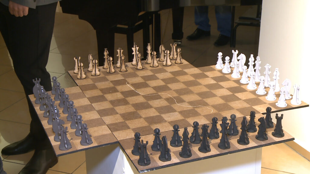 “Posjetioci izložbe mogu da pogledaju crteže, laserske gravure na papiru, objekte, predmete, a ima i jedan video-rad. U suštini svi radovi se dotiču pitanja kretanja, iskustva dijaspore, ali kroz neki više poetičan, intiman način. Svaki rad ima neki svoj jezik. Recimo ‘Strune’ se bave sjećanjima sa tipičnih prostornih putanja koje su obilježile moj život. Onda imamo studiju matematičkih čvorova koji na malo apstraktniji način postavljaju pitanje o složenosti kretanja, o tim nekim petljama koje mi ostavljamo iza sebe, nevidljivim dok se krećemo. Video-rad bavi se temom migracija, više u nekom istorijskom kontekstu. Tu je i interaktivni rad ‘Tamo, ovdje, prije, poslije’. To je verzija šaha za četiri igrača sa jednom laserskom gravurom, a u stvari to je mapa svemira na papiru”, pojašnjava Bundalo.