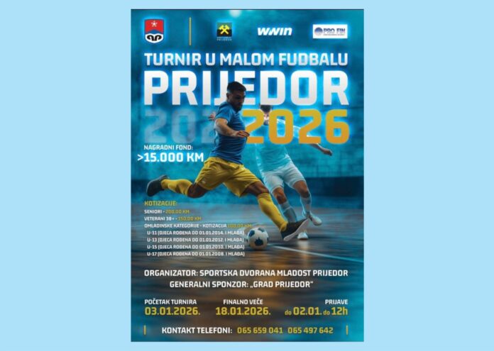 POZNATI UČESNICI OSMINE FINALA KOD SENIORA NA TURNIRU  U MALOM FUDBALU „PRIJEDOR 2026“