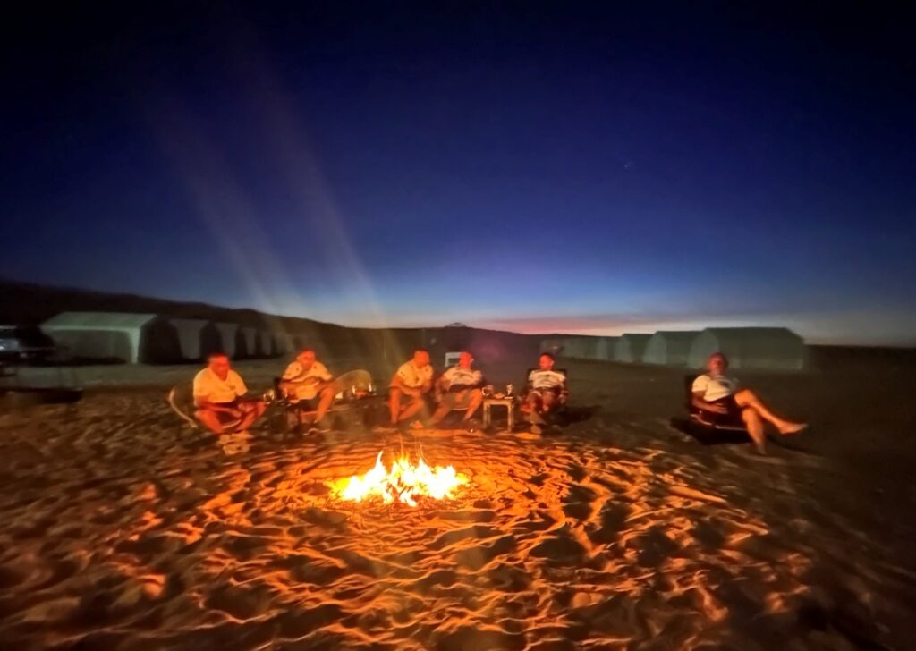Dodaje da je kamp usred pustinje bio fascinantan, a imali su i tekuću vodu. Uživali su u večeri pored logorske vatre i tradicionalnom hlјebu nalik lepinji koji su im domaćini ispekli na kombinaciji žara i pijeska. Nezaboravan je bio i nebeski svod.
