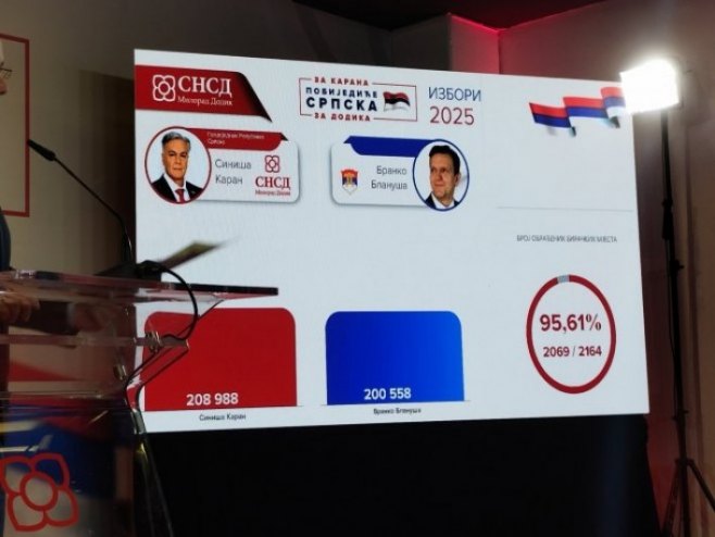 – Na 97 odsto obrađenih biračkih mjesta Siniša Karan osvojio je 214.545 glasova, a Branko Blanuša 204.620 – naveli su iz SNSD-a.