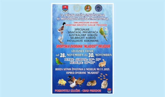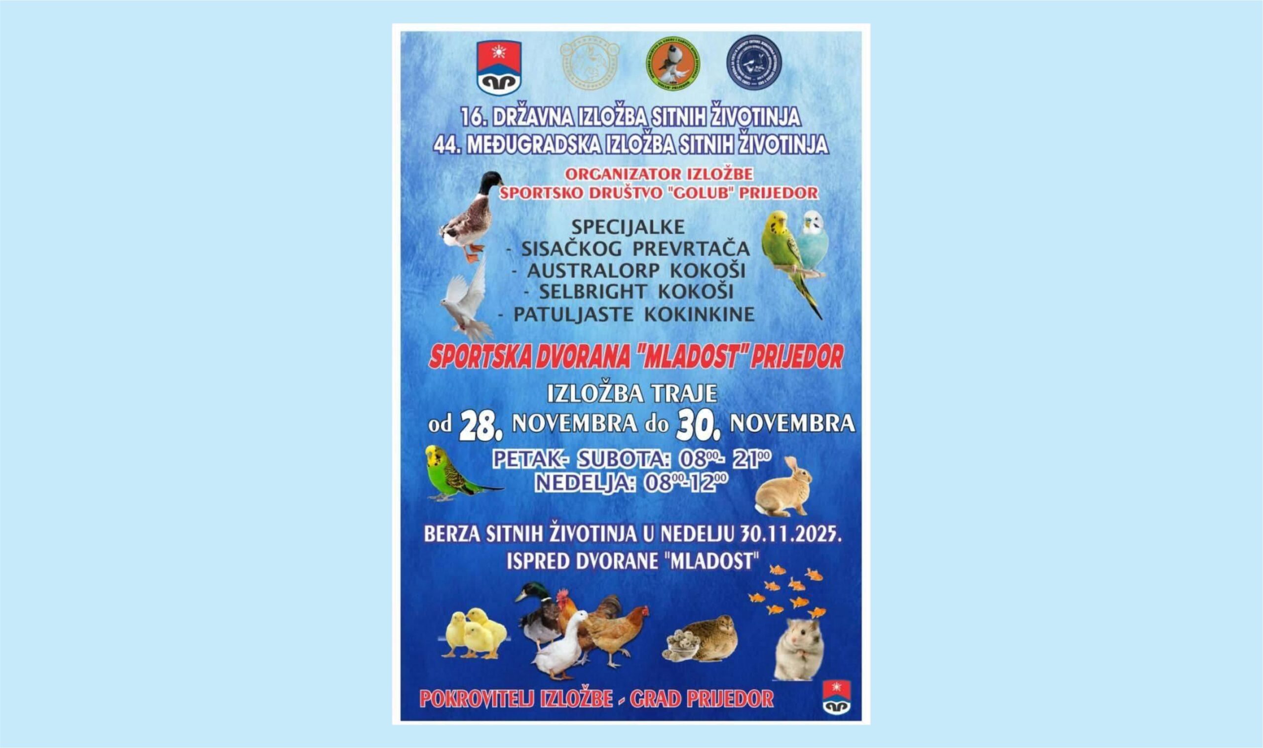 Sportsko društvo “Golub” iz Prijedora organizuje 16. državnu i 44. međugradsku izložbu sitnih životinja.