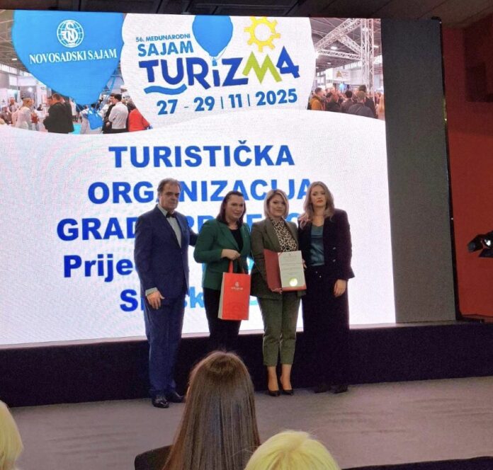 Turistička organizacija grada Prijedora dobila je prestižno priznanje na 56. Međunarodnom sajmu turizma u Novom Sadu – Diplomu sa velikom zlatnom medaljom za unapređenje i promociju autentične turističke ponude kroz projekat “Potkozarska kuća”, kao i za doprinos valorizaciji domaćih proizvoda, tradicije i lokalne zajednice. Na sajmu, koji se održava od 27. do 29. novembra, Turistička organizacija grada Prijedora predstavlja turističku ponudu ovog kraja u saradnji s Turističkom organizacijom Republike Srpske. Na zajedničkom štandu izloženi su promotivni materijali i autentični proizvodi “Potkozarske kuće”, koji su privukli veliku pažnju posjetilaca. Prestižno priznanje potvrđuje kontinuirani rad Turističke organizacije grada Prijedora na očuvanju i predstavljanju bogate potkozarske tradicije, te još jednom ističe važnost ovog projekta u razvoju lokalnog turizma.