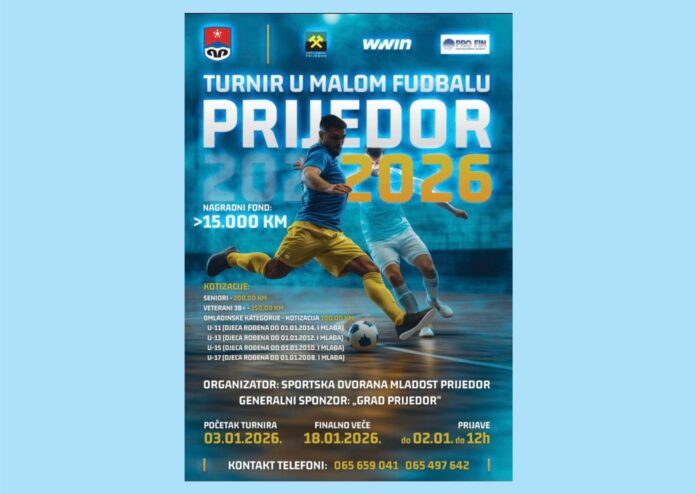 Prijedor će početkom 2026. godine biti u znaku malog fudbala. Tradicionalni turnir u malom fudbalu “PRIJEDOR 2026” počinje 3. januara, a finalno veče biće održano 18. januara. Organizator turnira je Sportska dvorana “Mladost”, pod pokroviteljstvom Grada Prijedora.