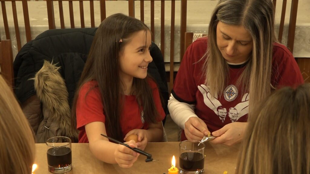 Članice Udruženja za očuvanje tradicije nastoje da prenesu običaje na mlađe generacije, pa je tako Jelena Todić dovela osmogodišnju kćerku Lanu da zajedno šaraju jaja tradicionalnom tehnikom.