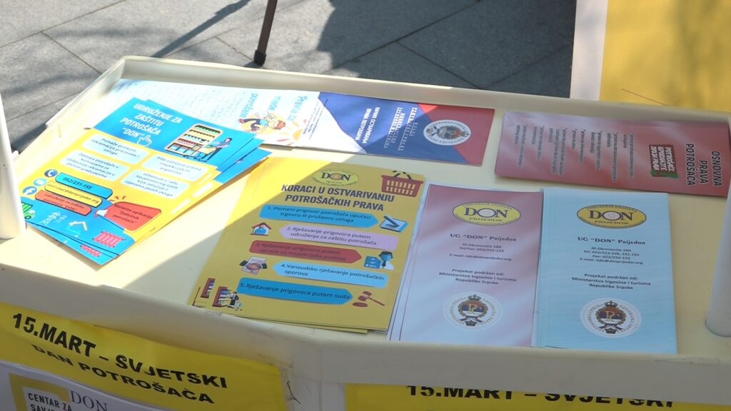 Podjelom promotivnog materijala na gradskom trgu, Udruženje građana “DON” obilježilo je Svjetski dan prava potrošača. Na info-štandu ovog udruženja, građani su imali priliku da se informišu o novom Zakonu o zaštiti potrošača i načinu ostvarivanja svojih prava. Za potrošače u BiH ovo su izazovna vremena, s obzirom na brojna poskupljenja u posljednjih dvadesetak dana, počevši od povećanja cijene goriva, električne energije do osnovnih životnih namirnica, ističu u “DON-u”. Izvršni direktor Murisa Marić navodi da, bez obzira na svu ovu problematiku, u Bosni i Hercegovini postoje zakoni koji, koliko je to moguće, štite potrošače. Dodaje da još uvijek dosta građana nema prave informacije kako mogu biti zaštićeni kao potrošači.